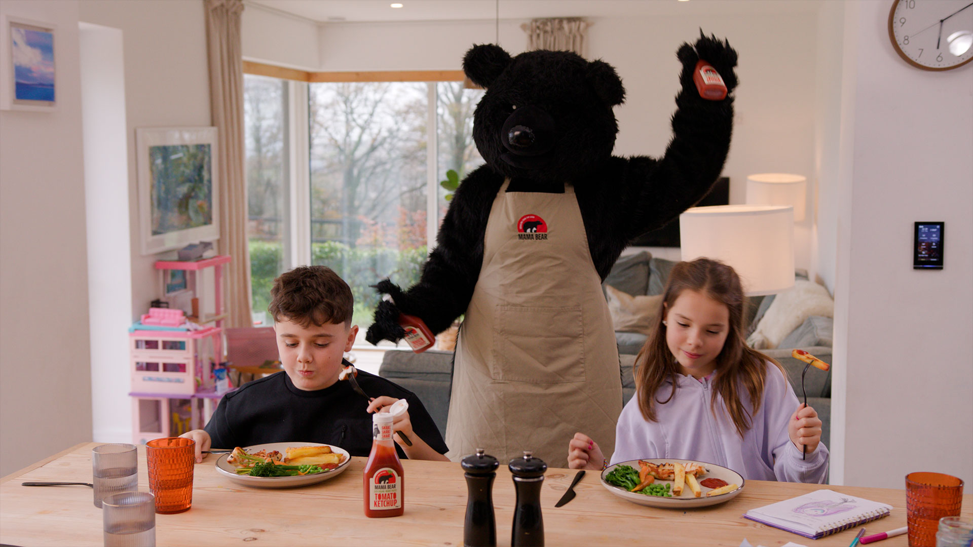 Mama Bear is launching it’s child friendly ketchups and came to us asking for help producing a cinema advert. They spoke to us about the product and the typical working parents who are concious of trying to get healthy plates of food into their kids after a long day! Mama bear ketchup really helps with that.